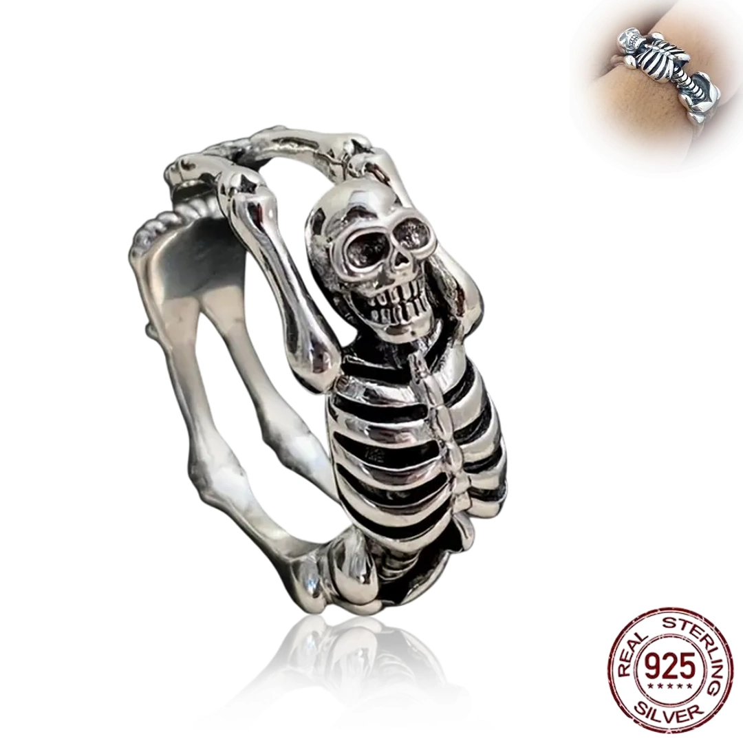 Bague squelette relax en argent 925 : un design détaillé, ajustable et audacieux pour un style rock, gothique ou alternatif.