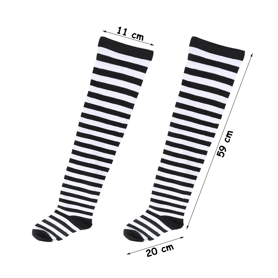 Bas rayés noir et blanc 79 cm, extra-longs haute cuisse. Un style audacieux, extensible et confortable. Parfaits pour un look alternatif saisissant.