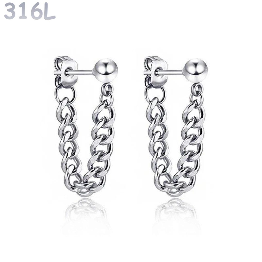 Boucles d’oreilles Perle Acier 316L à Chaînette