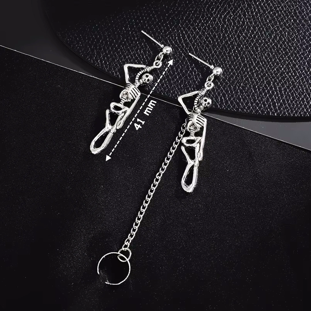 Boucles d’oreilles gothiques squelettes pendus en acier 316L, 41 mm. Symboliques, pendantes et expressives, pour un style sombre et affirmé.