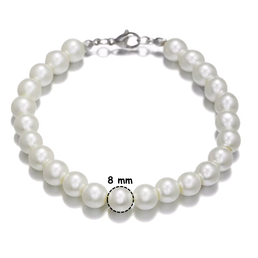 Bracelet de Perles Blanches 6-8-10 mm