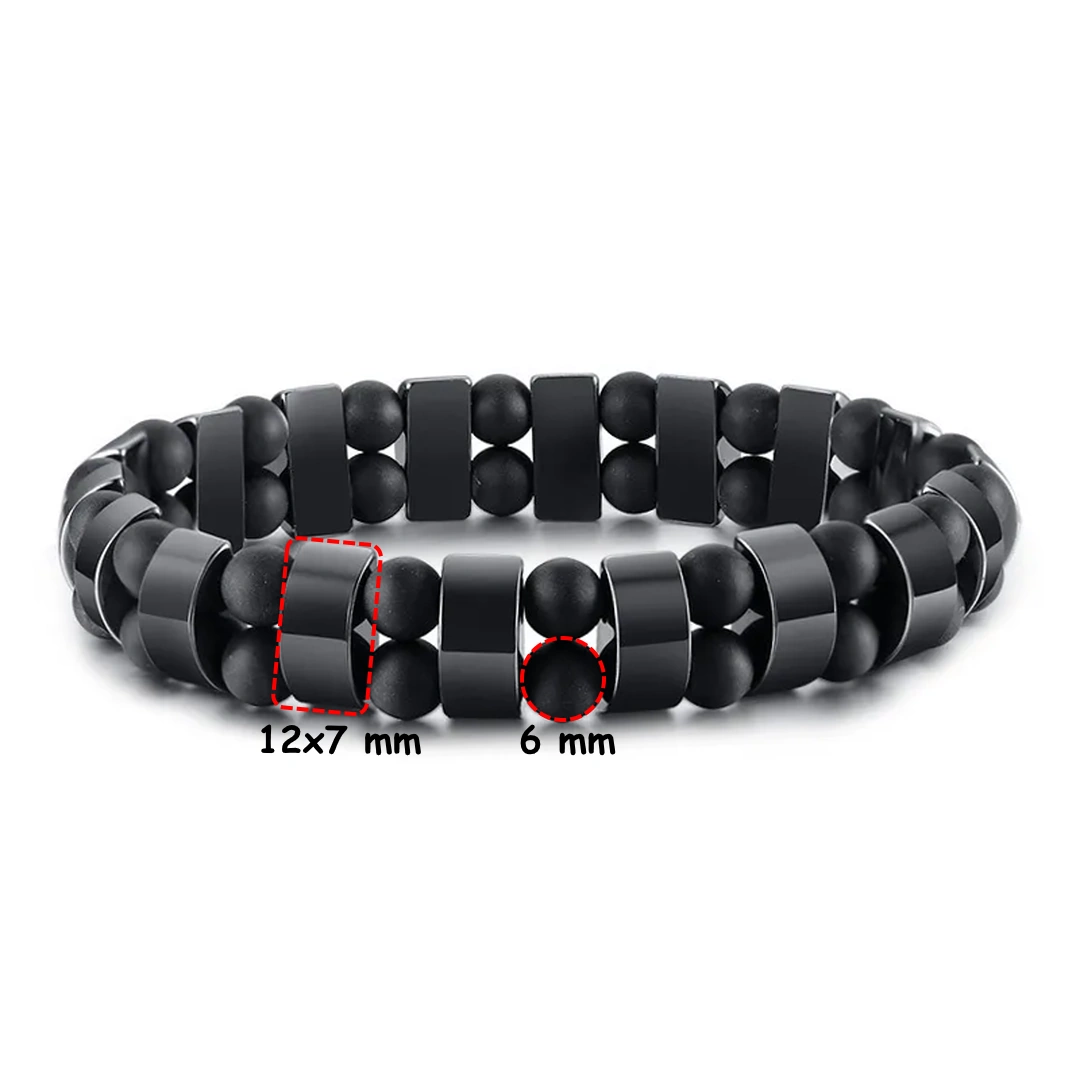Découvrez un bracelet unique, à la fois élégant et graphique, conçu pour s’adapter à tous les styles. Chaque pièce combine perles de 6 mm et segments d’hématite rectangulaires aux bords arrondis, mesurant 12×7 mm, pour un contraste subtil et raffiné.
