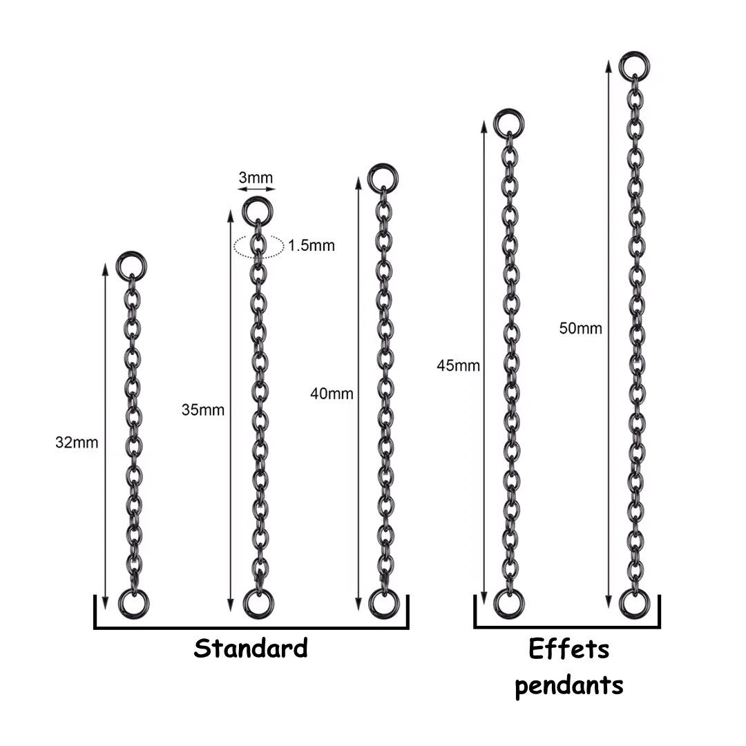 | Longueur de la chaîne | 17 mm, 24 mm, 32 mm, 35 mm, 40 mm, 45 mm, 50 mm |