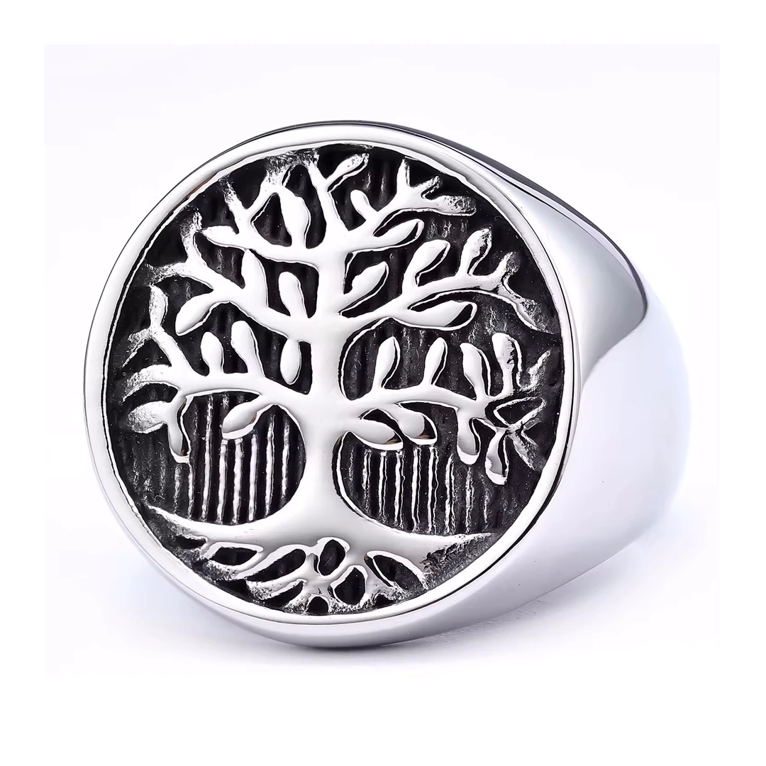 Chevalière Arbre de Vie en Acier 316L – Bague Symbolique