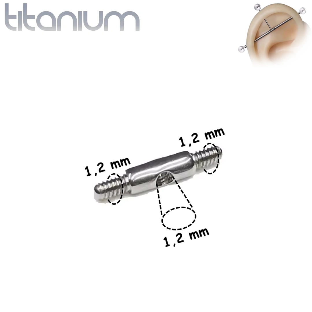 Connecteur en titane à triple filetage 1,2 mm pour piercing industriel. Idéal pour composer, rallonger ou décorer des barres personnalisées.