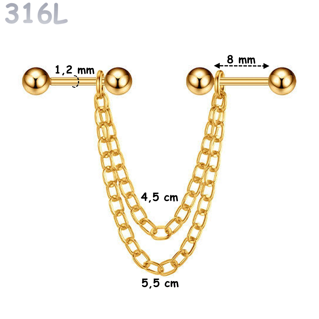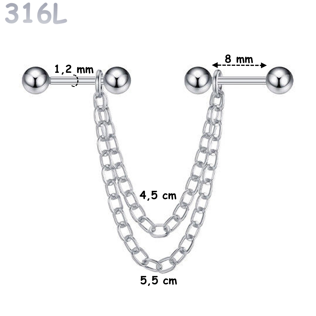 | Type de Piercing | Connecteur double piercing (barbells avec chaînes) |