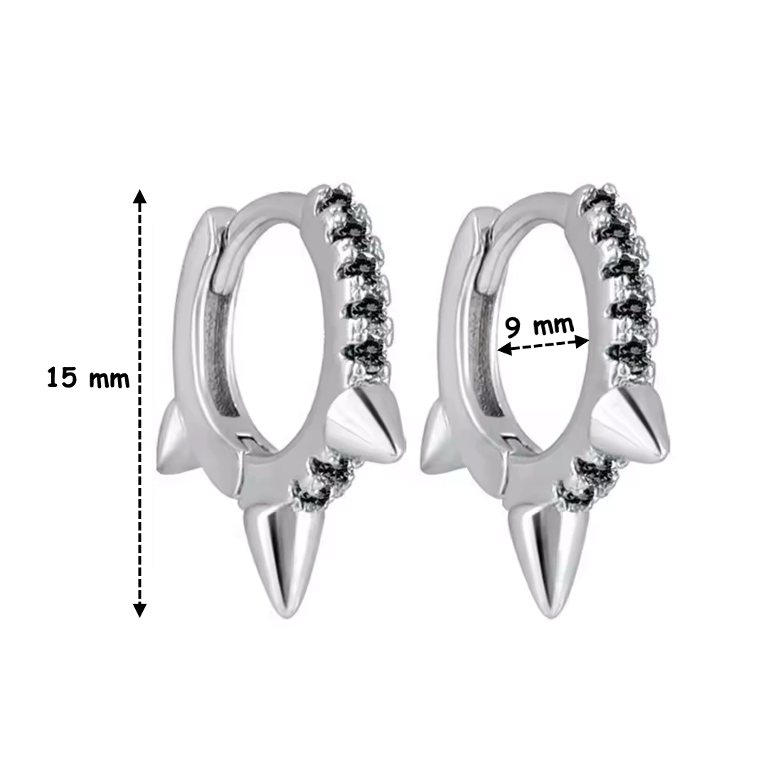 Boucles d’oreilles créoles en argent 925 avec pointes et zirconiums noirs. Diamètre 9 mm, finition brillante. Style punk élégant, discret et affirmé.