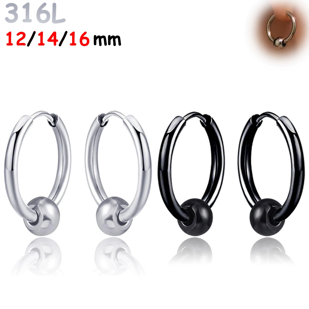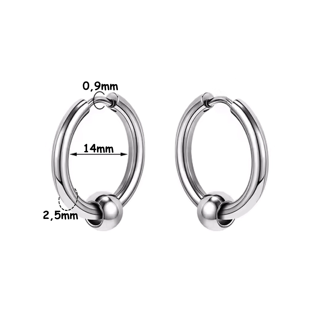 Créoles Épaisses 316L à Bille Mobile – Diamètre 12 à 16 mm