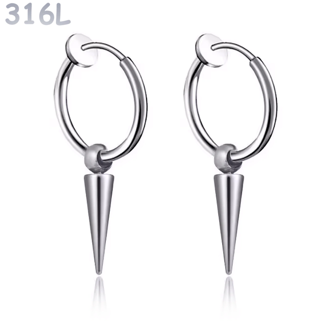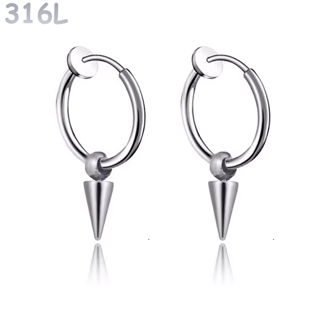 Créoles à Pointe Conique Oreilles Non Percées Acier 316L
