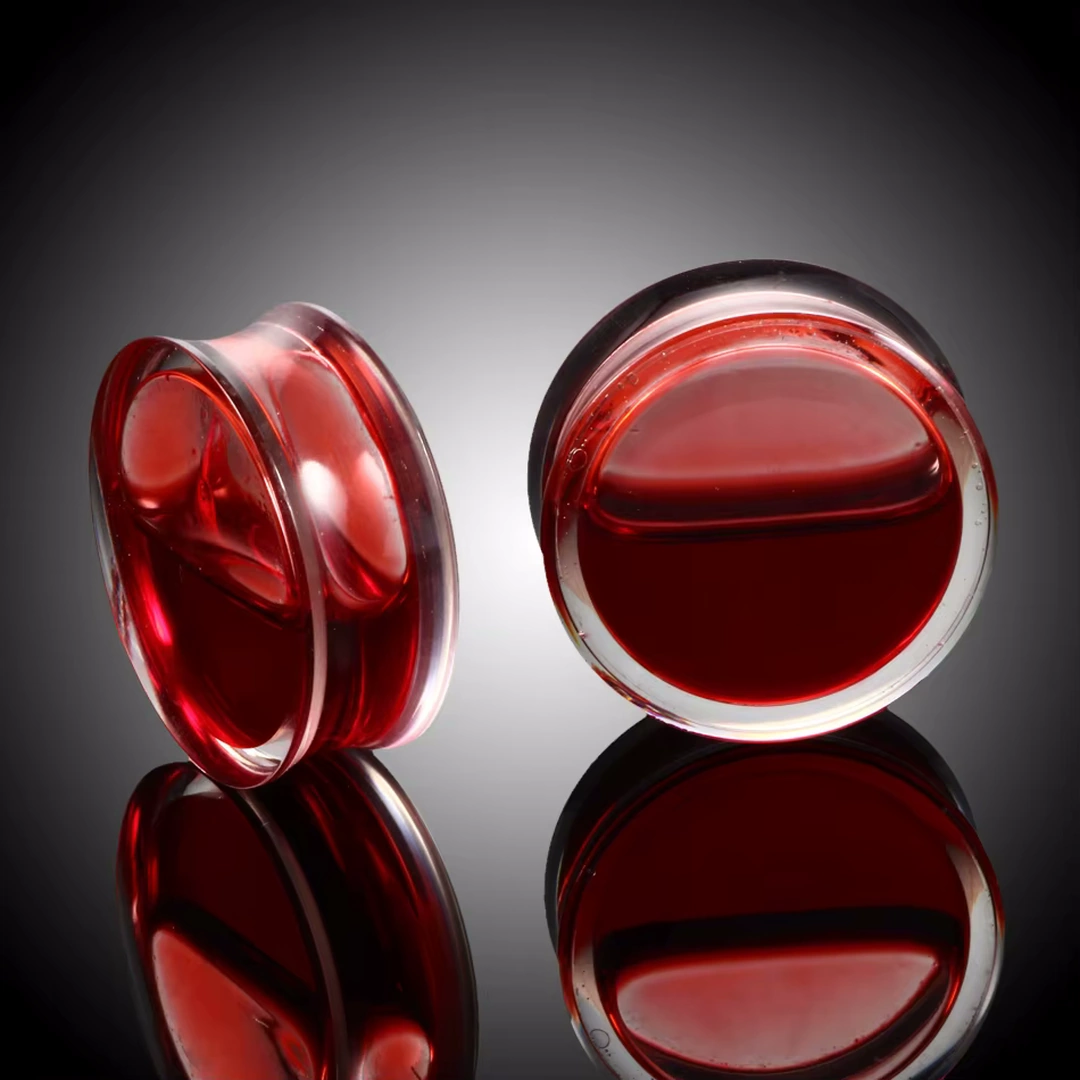 Écarteur de type plug en acrylique rempli d’un liquide rouge sang (diamètre 8–25 mm). Idéal pour un look goth, punk ou pour briller à Halloween. Vendu à l’unité.