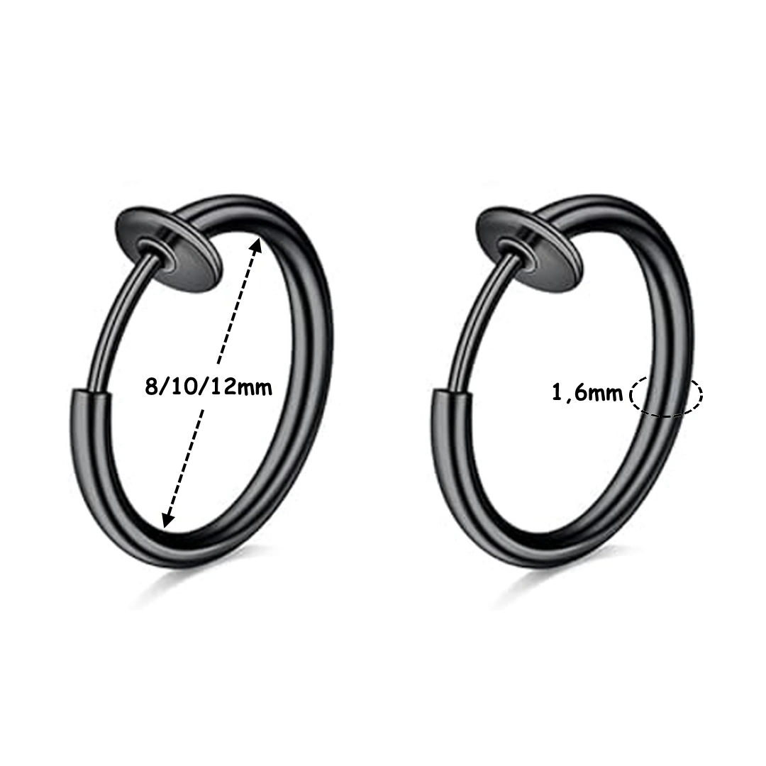 Faux piercing anneau à ressort en acier 316L. Pour nez ou oreille. Épaisseur 1,6 mm, effet réaliste garanti. Disponible en argenté, doré, noir ou or rose. Vendu par paire.