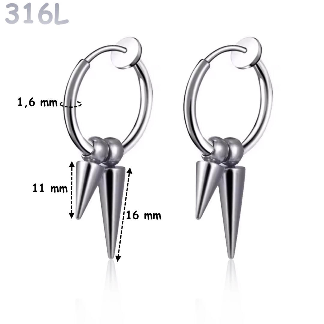 Ces fausses créoles double spike reprennent les codes du piercing alternatif — sans en imposer les contraintes. Un bijou pensé pour celles et ceux qui veulent l’attitude, sans engagement.