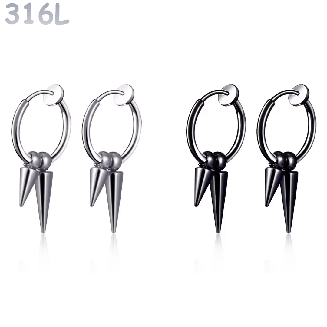 Faux piercing créole double spike en acier chirurgical 316L. Clip à ressort confortable, effet CBR, finition acier ou noir PVD, sans perçage.