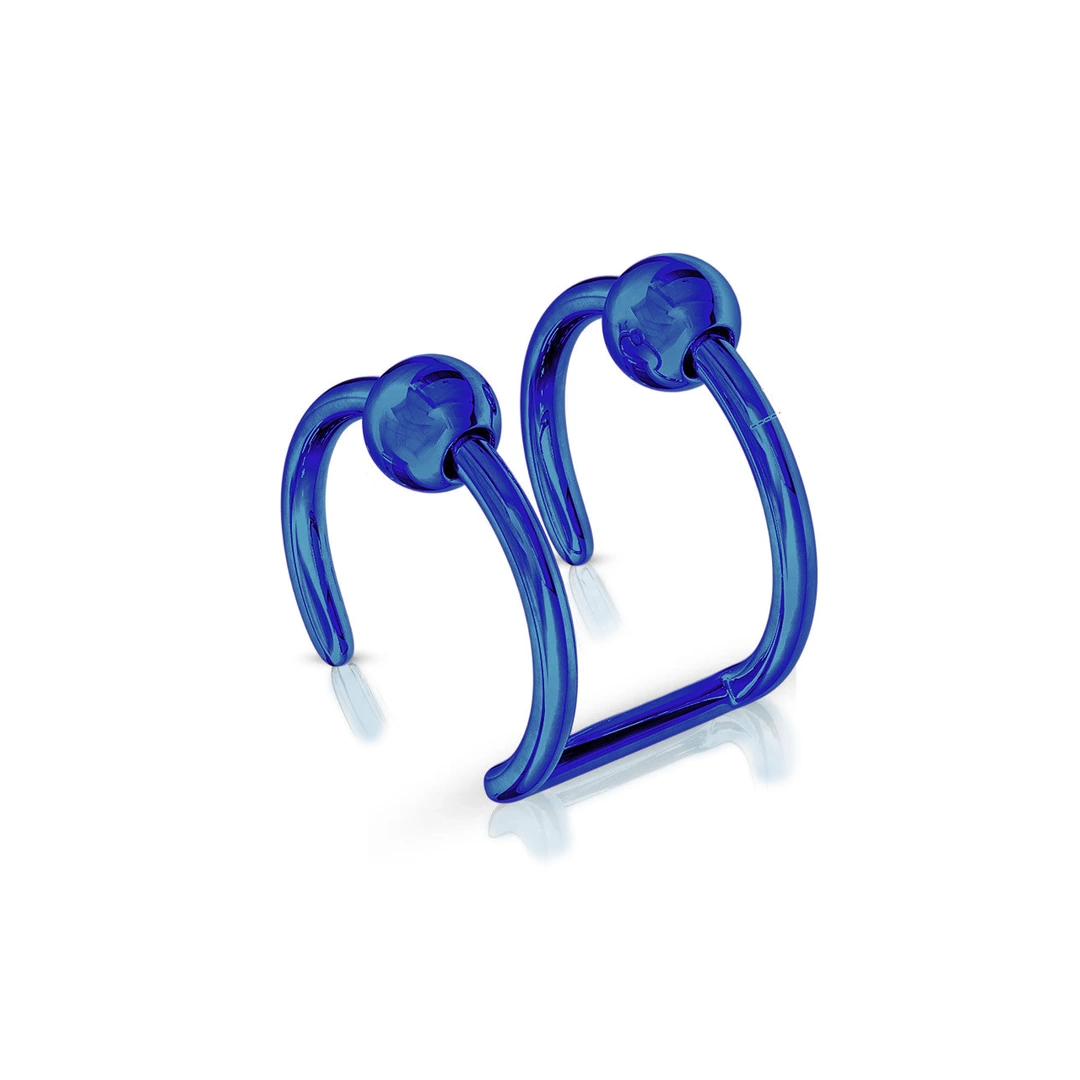 Faux piercing double anneau en acier 316L pour lèvre et cartilage. Diamètre 8 mm, billes 3 mm, finitions acier, noir, doré, bleu ou multicolore PVD.