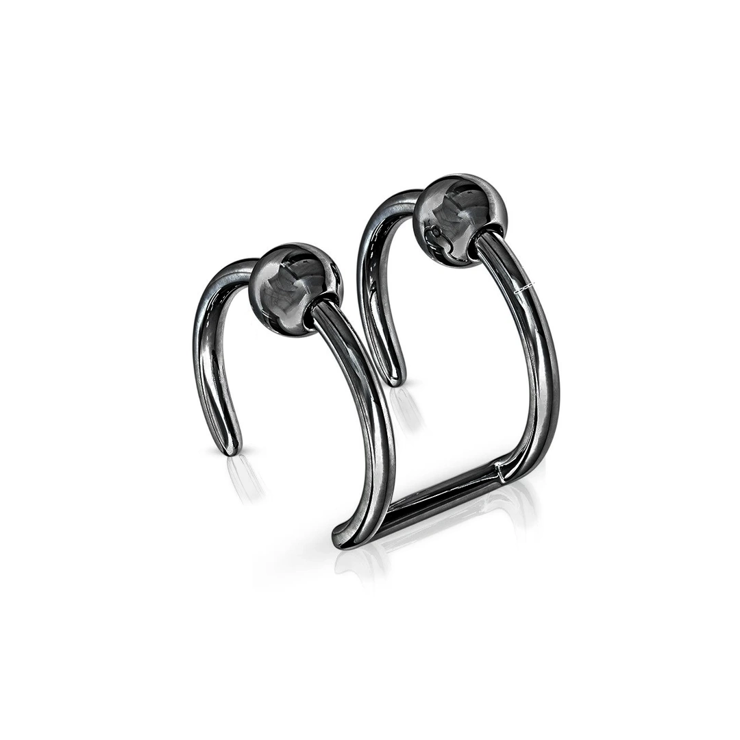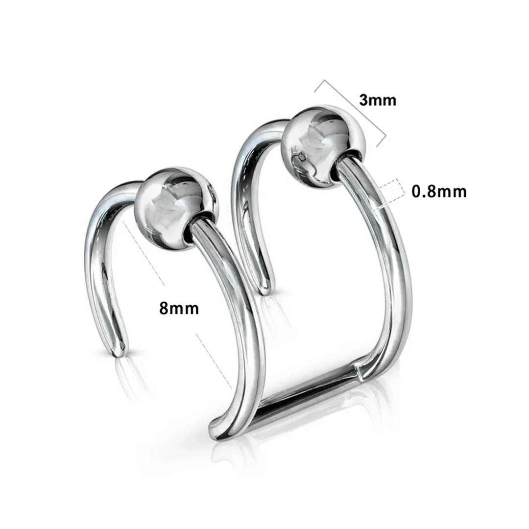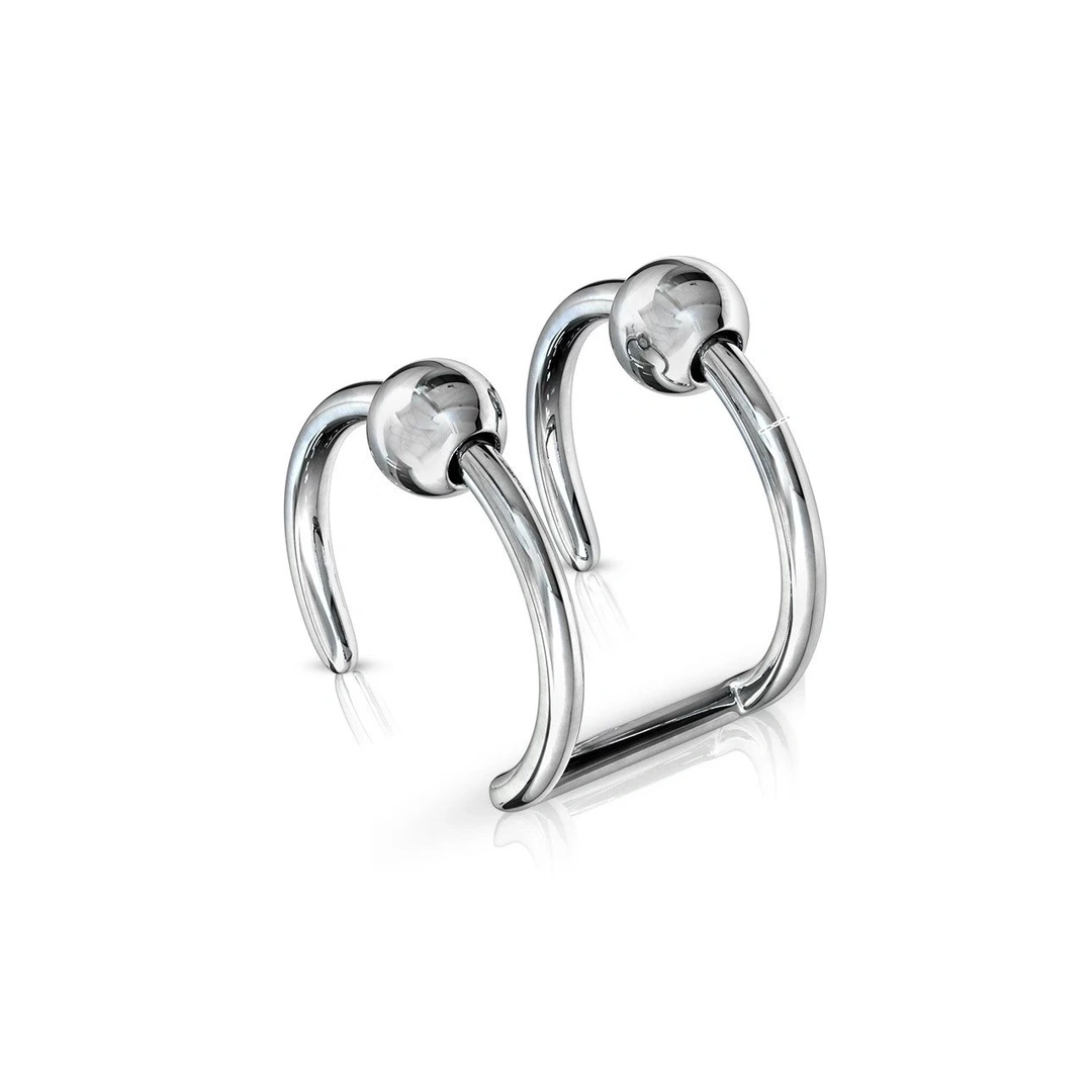 Faux Piercing Double Anneau avec Billes en Acier 316L