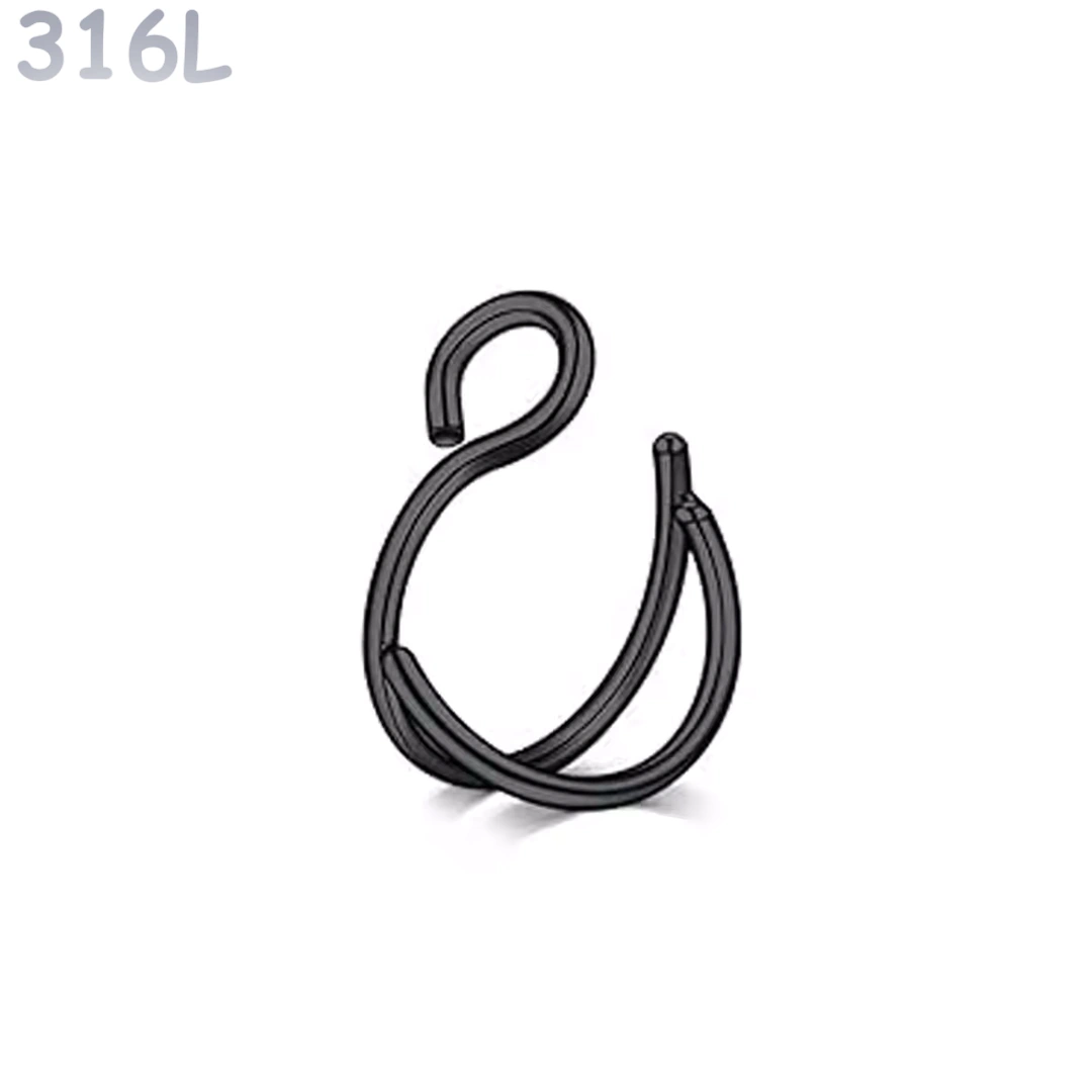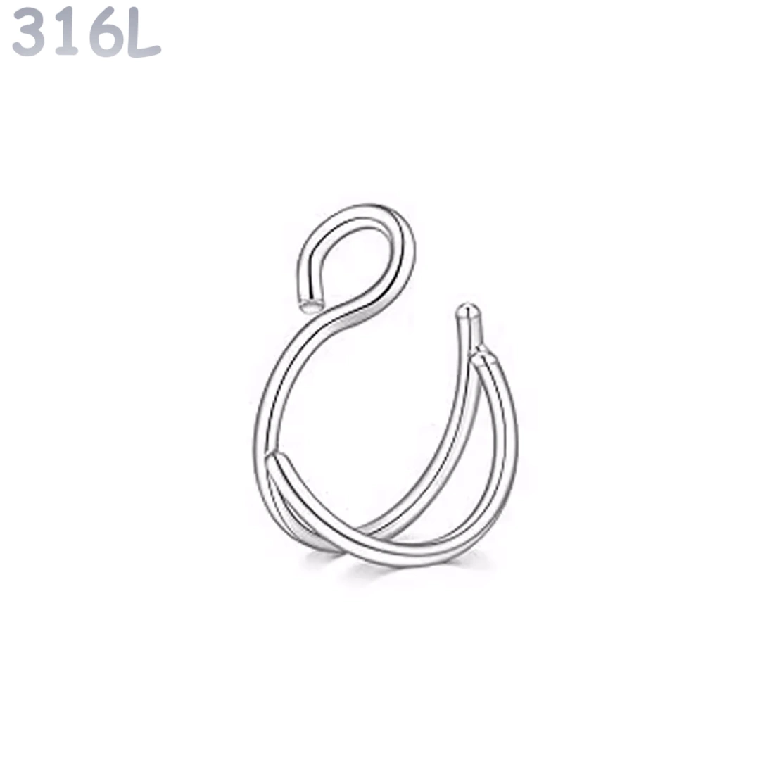 Faux piercing double anneau nostril en acier 316L. Diamètre 8 mm, tige 0,8 mm. Effet stacking sans perçage, maintien sécurisé.