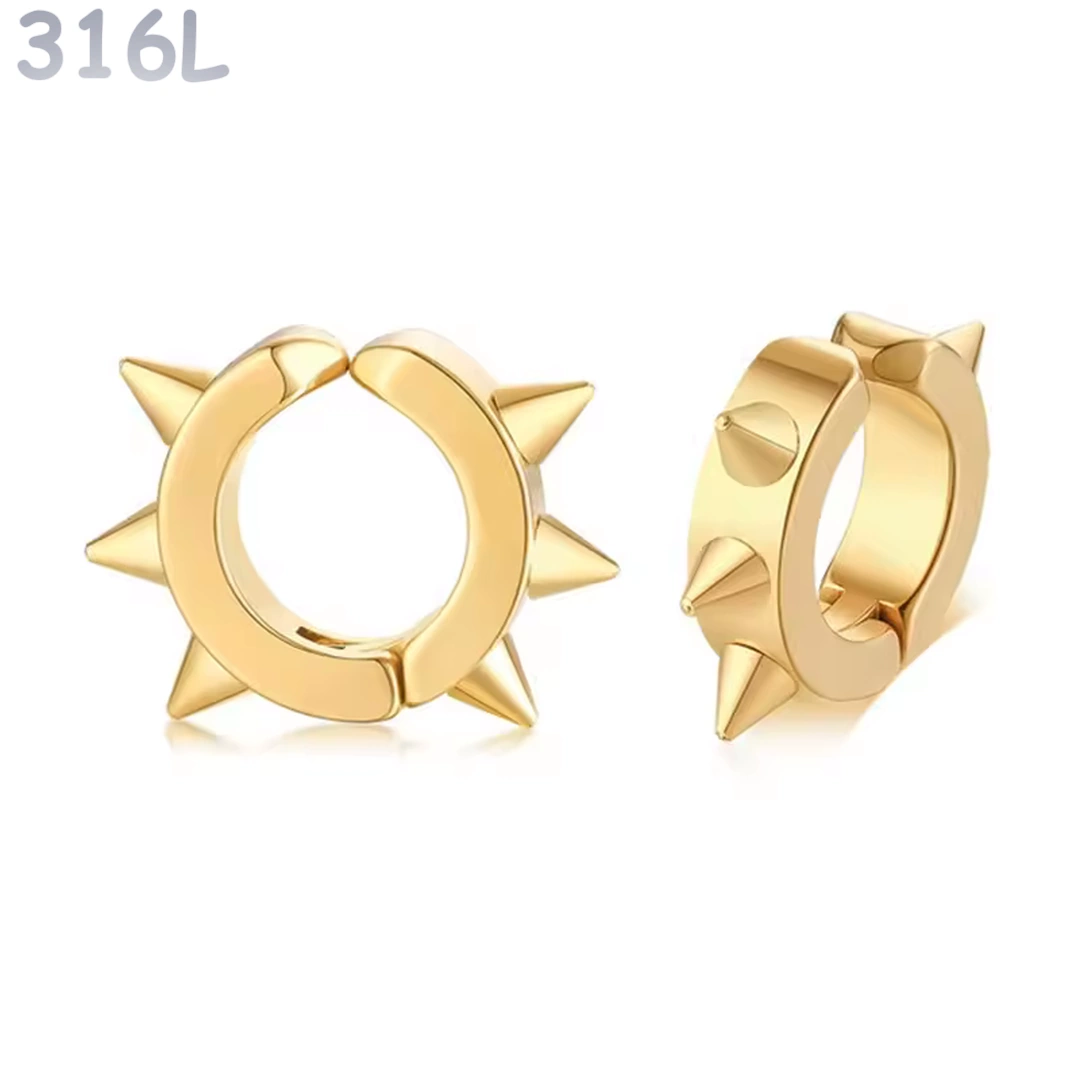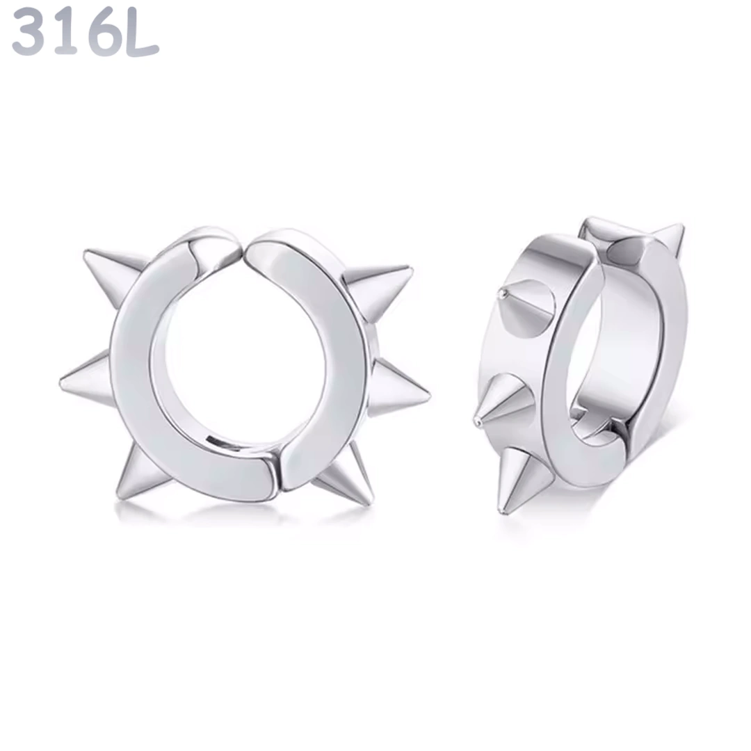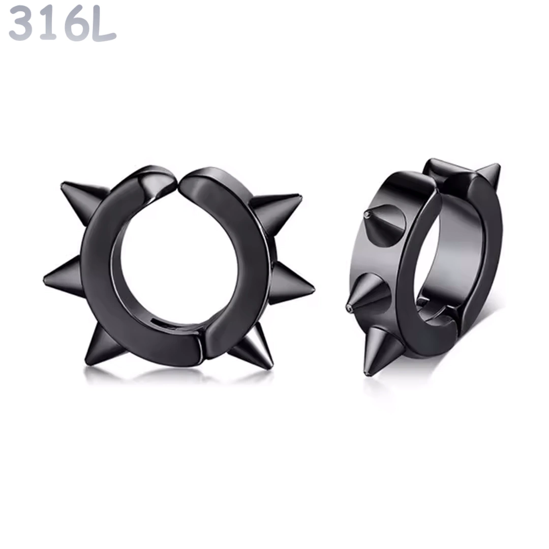 Ce faux piercing oreille en anneau à pointes incarne une esthétique résolument punk, rock et alternative, pensée pour celles et ceux qui veulent marquer leur style sans passer par le perçage.