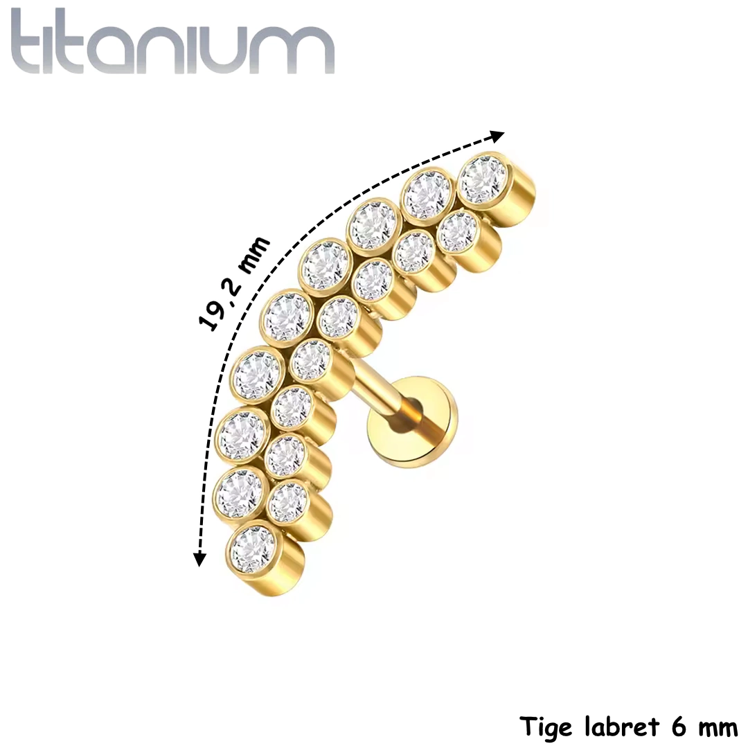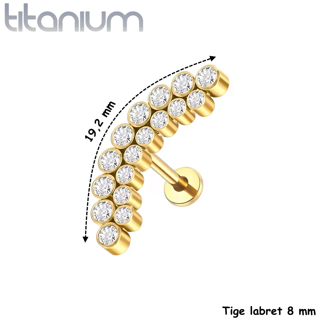 Piercing Labret Arqué Titane à Double Ligne de Zirconiums
