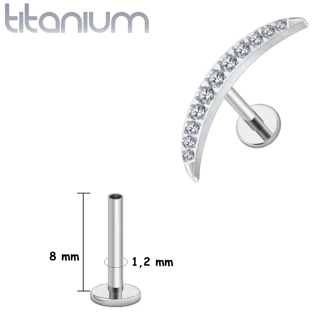 Piercing Labret Courbé en Titane Pavé de Zircons Griffés