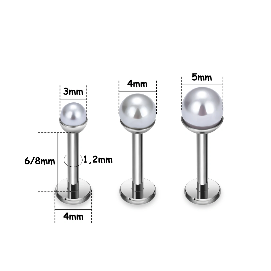Piercing Labret Perle Nacrée 3–4–5 mm sur Socle Titane