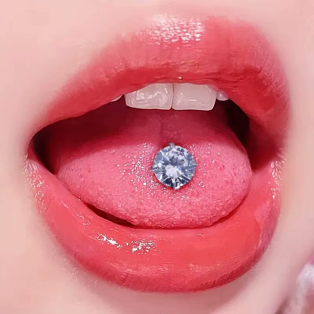 Pensé pour une zone aussi expressive que mobile, ce piercing langue barbell allie éclat, solidité et confort. Son design met en valeur un zircon cubique scintillant de 6 mm, serti à 4 griffes, qui capte la lumière à chaque mouvement pour un rendu lumineux et assumé.
