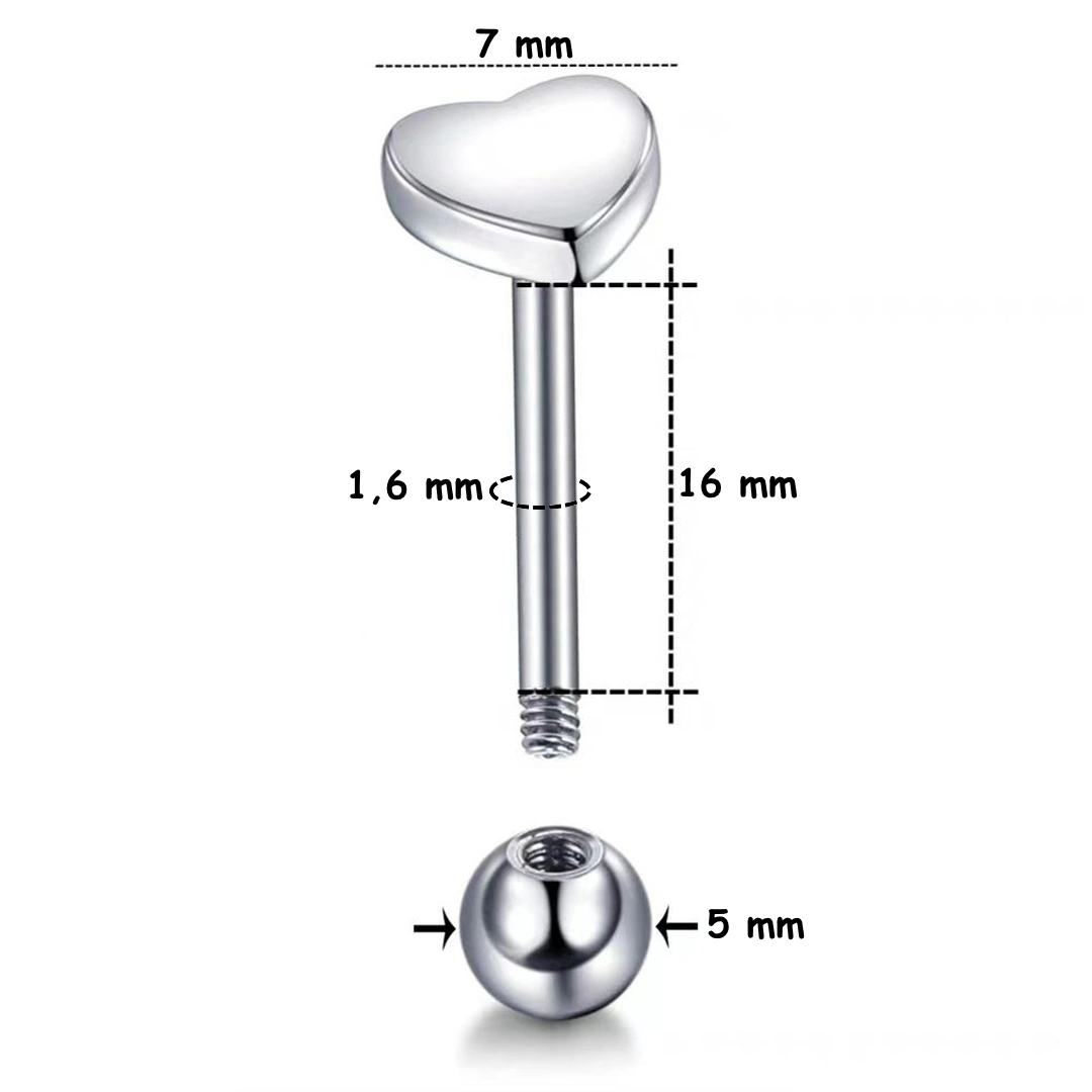 Piercing Langue Cœur Acier 316L Barbell 16 mm
