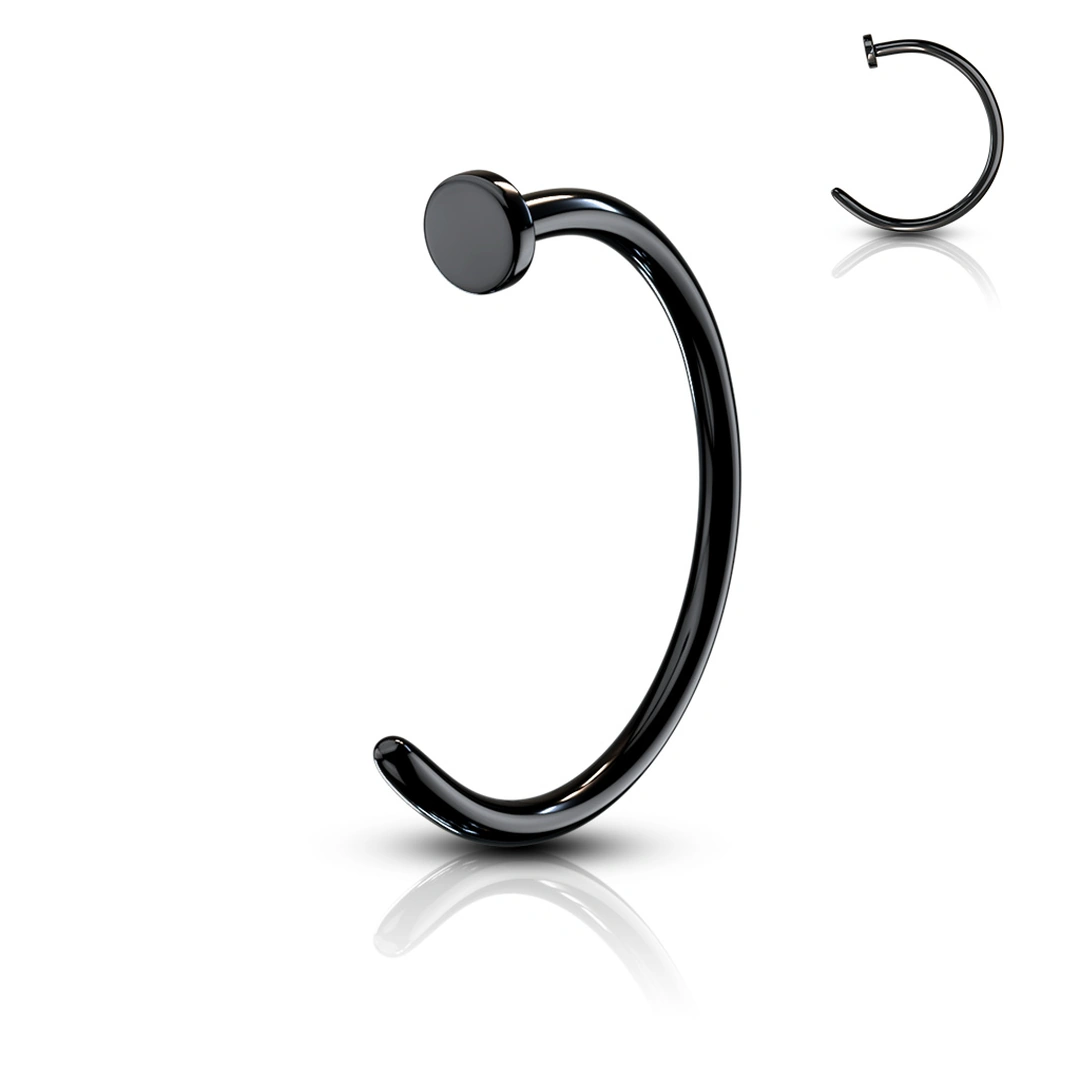 Anneau fin pour piercing de narine en acier 316L poli ou noir PVD. Confort, éclat et discrétion pour sublimer votre profil en toute élégance.