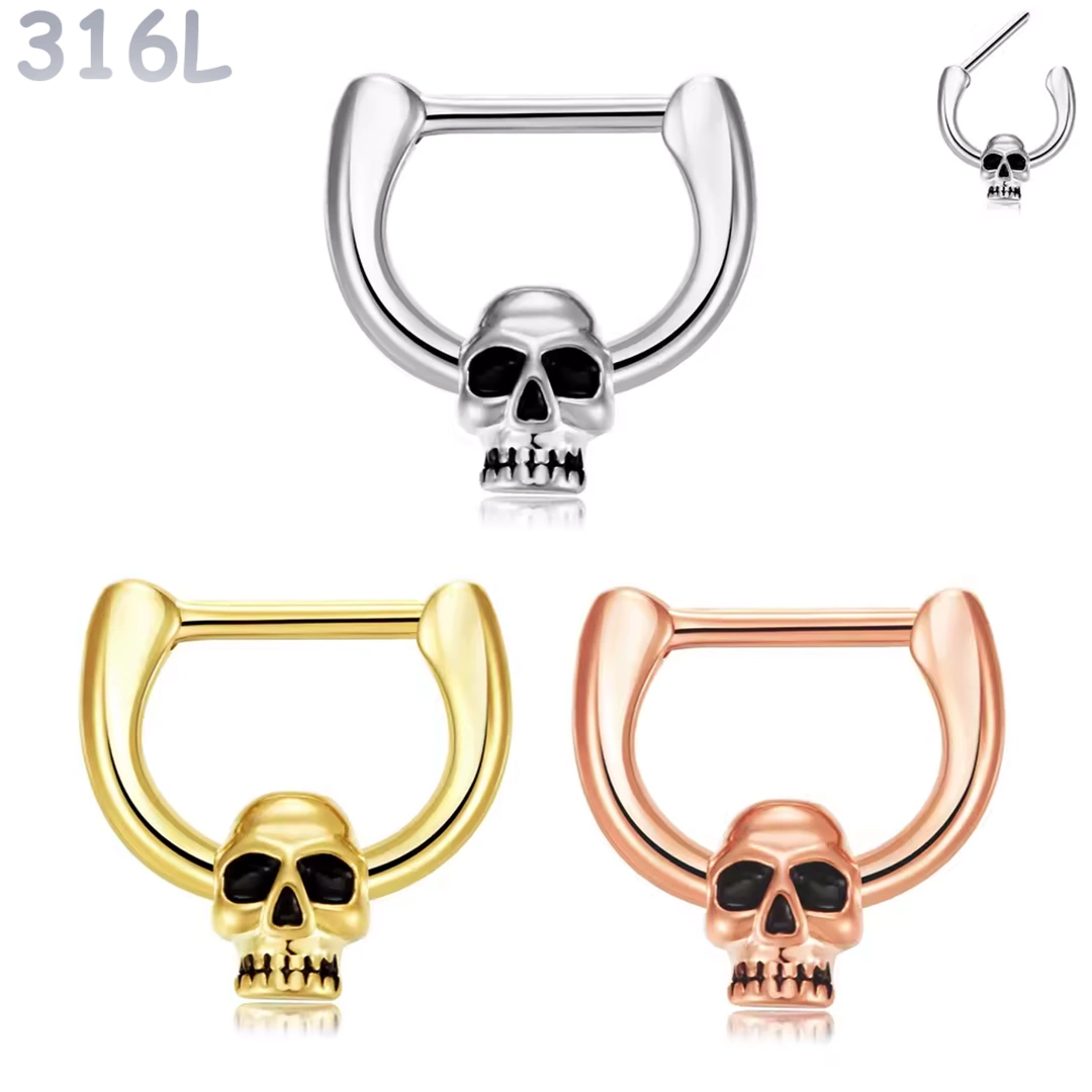 Piercing Septum Clicker Tête de Mort Acier 316L