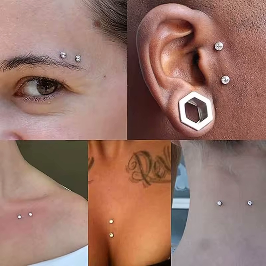Pensé pour s’adapter à différentes zones du corps, ce microdermal peut être porté au visage, à la clavicule, au sternum, dans le bas du dos, à la nuque ou encore à l’arcade. Il s’intègre là où un piercing classique ne peut pas.