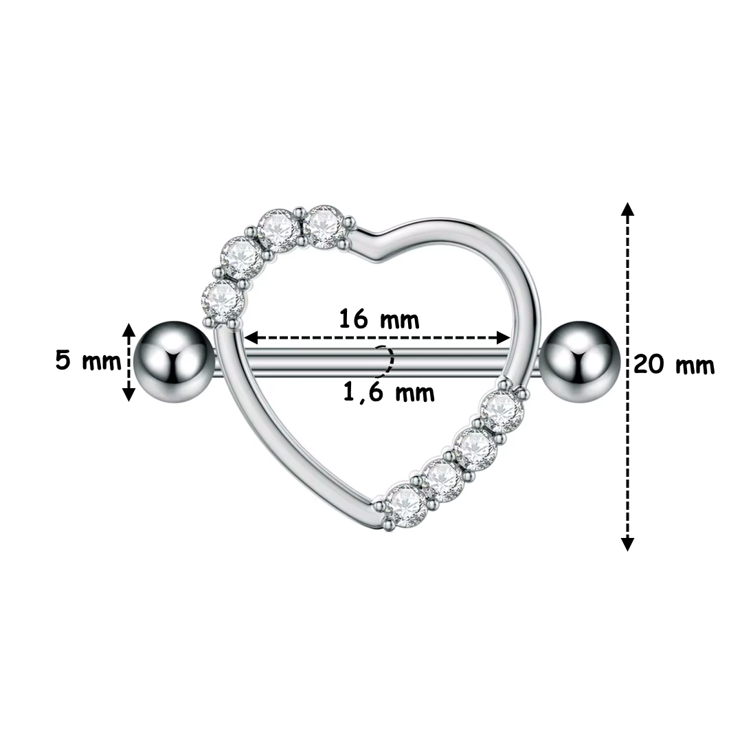 Piercing Téton Bouclier Cœur Zirconiums Acier 316L