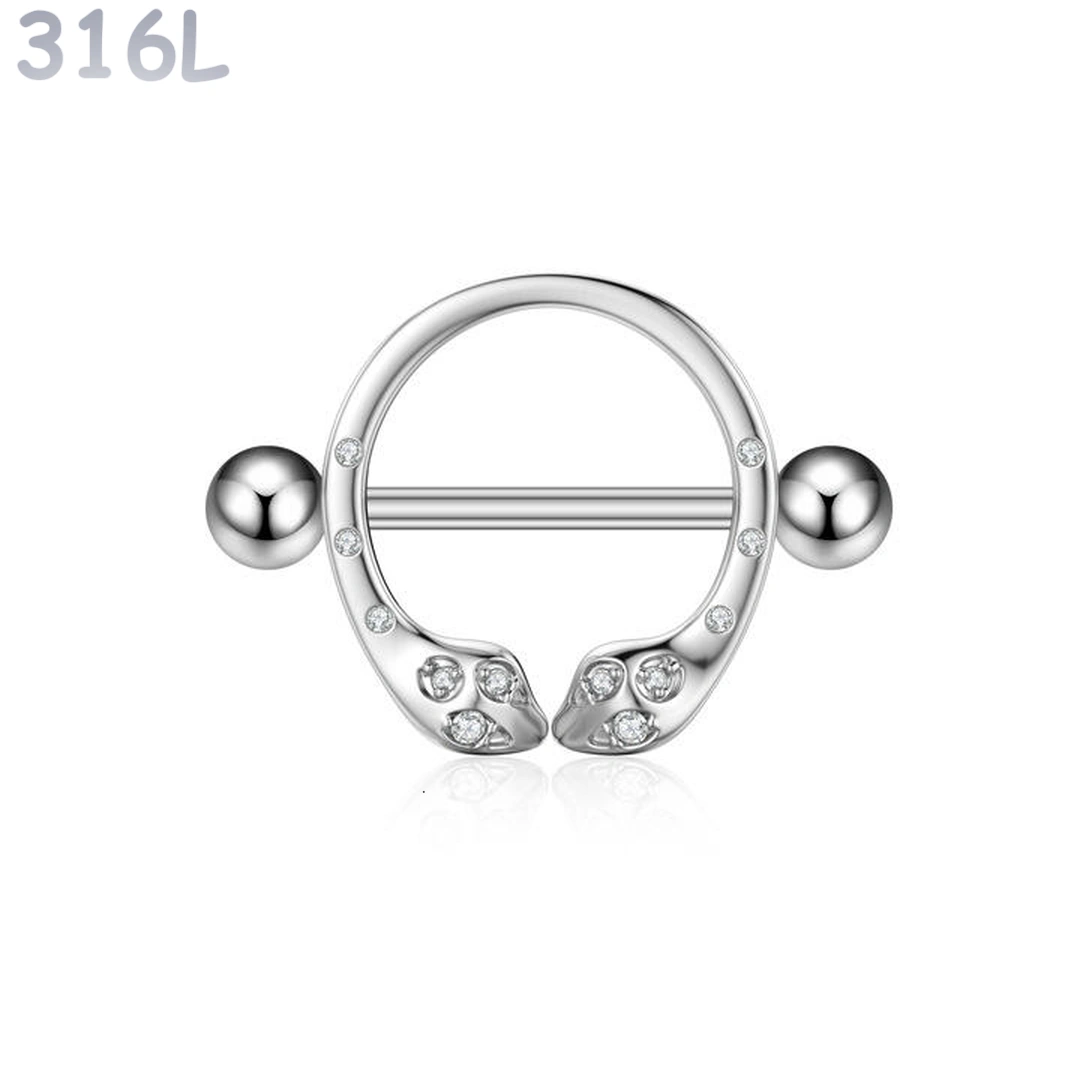 Piercing Téton Bouclier Serpent Double Tête Acier 316L