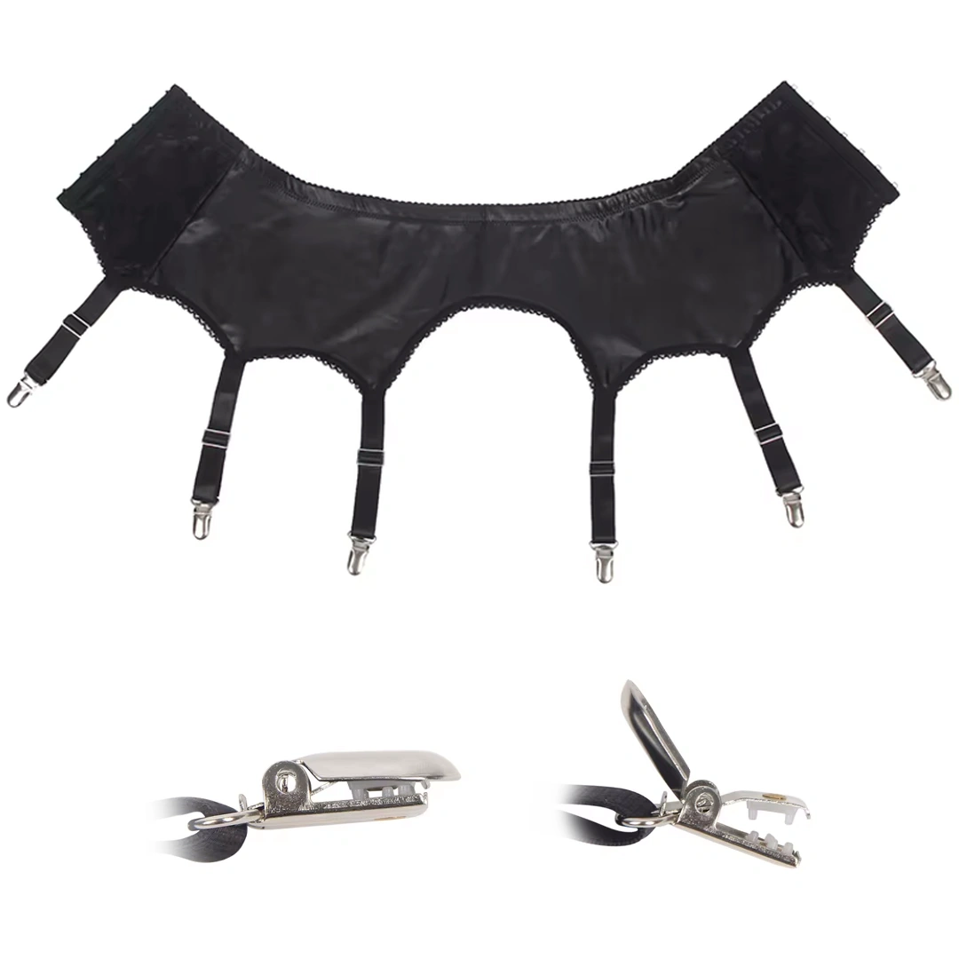 Porte-Jarretelle Cuir & Dentelle 6 Clips Métalliques