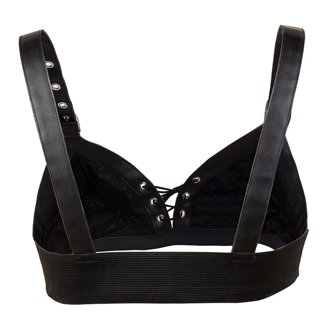 Les bonnets en coton respirant sculptent la poitrine avec confort, tandis que les bordures en similicuir noir ajoutent une touche sensuelle et rebelle.